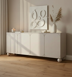 Komoda so zásuvkami Vesper 160 cm - kašmír / čierne úchytky / guľaté nohy