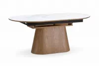 Biely oválny stôl Solvian 160-240x90 cm rozkladací - biely mramor / dub