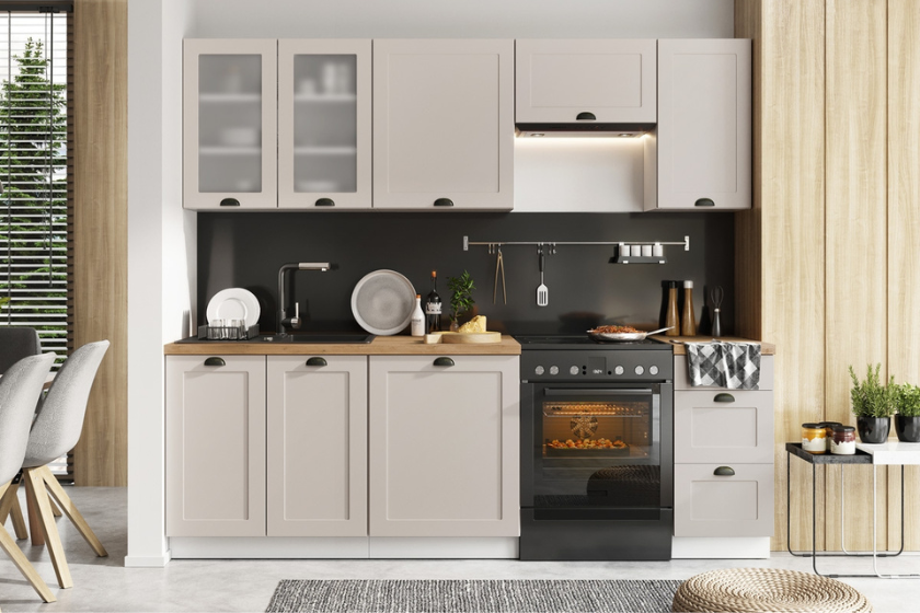 Ak plánujete kuchyňu do U alebo všeobecne budete mať skrinky naproti sebe, minimálny priestor medzi nimi by mal byť 120 cm, aby ste tu prešli a mohli skrinky pohodlne otvárať. Je ale lepšie počítať so vzdialenosťou 140 cm – to sa sem potom vojdete aj dvaja bez toho, aby ste do seba narážali. Keď vezmete do úvahy, že štandardná šírka kuchynských skriniek je 60 cm, kuchyňa vám na šírku zaberie 260 cm.