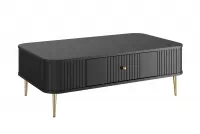 Prvým, čo vás na tomto konferenčnom stolíku zaujme, je jeho elegantný dizajn. Čierna farba korpusu a frontu v kombinácii so zlatými nožičkami a rukoväťami robí z tohto kúsku nábytku skutočný skvost. Je to dokonalý doplnok pre každú modernú obývačku.