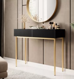 Toaletný stolík Malmi 100 cm - čierny mat / zlatá