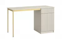 Elegantné línie, matný kašmírový povrch a zlaté kovové nohy vytvárajú luxusný vzhľad, ktorý okamžite zaujme v každej modernej pracovni. Frézovaná predná časť dodáva nábytku dizajnový akcent, vďaka ktorému sa stane dominantou miestnosti a podčiarkne váš vkus.