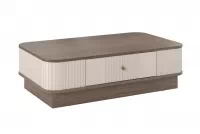 Hľadáte konferenčný stolík, ktorý dodá vašej obývačke štýl, praktickosť a zároveň sa stane nenahraditeľným prvkom vášho interiéru? Objavte stolík Vespera 103x60 cm na sokli - kašmírová / orech / zlatá, ktorý splní všetky vaše očakávania.