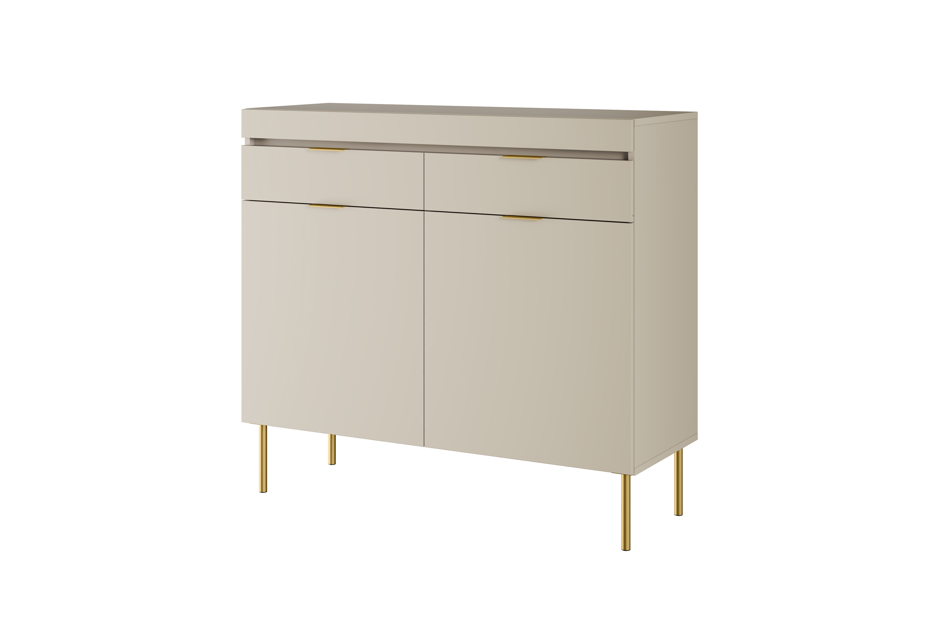 Funkčnosť je jednou z hlavných predností tejto komody. S dvoma dvierkami, dvoma zásuvkami a dvoma poličkami ponúka dostatok úložného priestoru na organizáciu vašich vecí. Štyri priehlbiny navyše poskytujú miesto na dekorácie alebo knihy. Komoda Sentia je praktickým riešením pre každú domácnosť, kde je potrebné spojiť úložný priestor s estetickým vzhľadom.