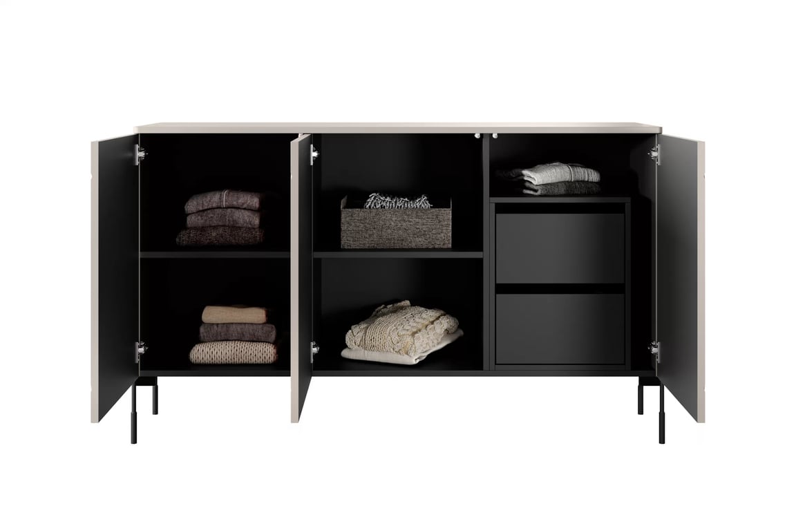 Hľadáte dokonalú komodu, ktorá obohatí váš obývací priestor? Spoznajte komodu Sonatia 150 cm s 2 ukrytými zásuvkami - kašmírová.