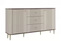 Hľadáte komodu, ktorá dokonale doplní moderný interiér? Objavte komodu Vespera 160 cm so zásuvkami - kašmírová / orech / zlaté nožičky.
