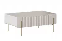 Elegantné línie v kašmírovom matnom prevedení a zlaté kovové nožičky vytvárajú dokonalý kontrast, ktorý púta pozornosť na prvý pohľad. Frézovaná predná časť dodáva exkluzívny vzhľad a jemný lesk zlatej podčiarkuje luxusný charakter stolíka. Tento dizajnový kúsok skvele zapadne do modernej obývačky, kde sa stane nielen praktickým, ale aj estetickým centrom priestoru.