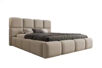 Elegantné prevedenie v tmavobéžovej buklé látke okamžite zaujme svojou nadčasovou estetikou a jemnou štruktúrou, ktorá pôsobí útulne aj štýlovo. Vysoké čelo postele dodáva interiéru noblesu a vytvára dokonalé miesto na oddych či čítanie. Strieborné detaily podčiarkujú moderný vzhľad a ľahko ladia s rôznymi doplnkami v spálni.