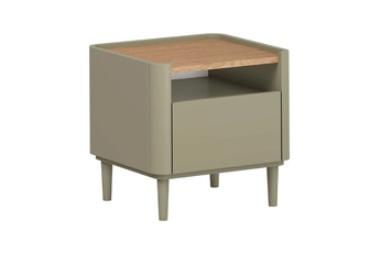 Elegantná kombinácia eukalyptového korpusu, pracovnej dosky v dekore dub baltic dune a prírodného dubového úchytu vytvára vizuálne príťažlivý kontrast, ktorý okamžite oživí atmosféru vašej spálne. Hladké línie, zaoblené hrany a precízne spracovanie dodávajú stolíku nadčasový vzhľad, ktorý sa hodí do moderných aj klasických interiérov.