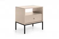 Chcete, aby bol váš interiér elegantný a jedinečný? Zariaďujete si minimalistickú spálňu? Určite v nej nesmie chýbať vkusný nočný stolík Eladia, ktorý doplní priestor pri posteli. Vďaka béžovej farbe sa tento kus nábytku dokonale hodí k mnohým usporiadaniam a kombináciám farieb. Béžovú konštrukciu dopĺňa čierna kovová podstava, ktorá jej dodáva ľahkosť. Vďaka tomu sa Eladia prezentuje vkusne a esteticky. Ako ozdobný prvok výrobca uvádza zlatú bižutérnu úchytku, ktorá je povestnou čerešničkou na torte.