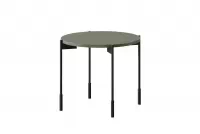 Tento stolík vás zaujme svojím okrúhlym tvarom a olivovou farbou. Jeho jedinečný dizajn a farebné prevedenie dodajú vašej miestnosti štýl a eleganciu. Čierne kovové nohy dokonale dopĺňajú celkový vzhľad.