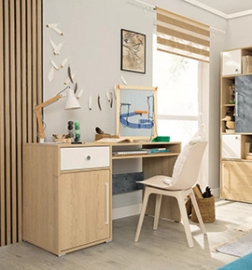 Písací stôl Step ST7 125 cm so zásuvkou - dub piškótový / biely lux / betón