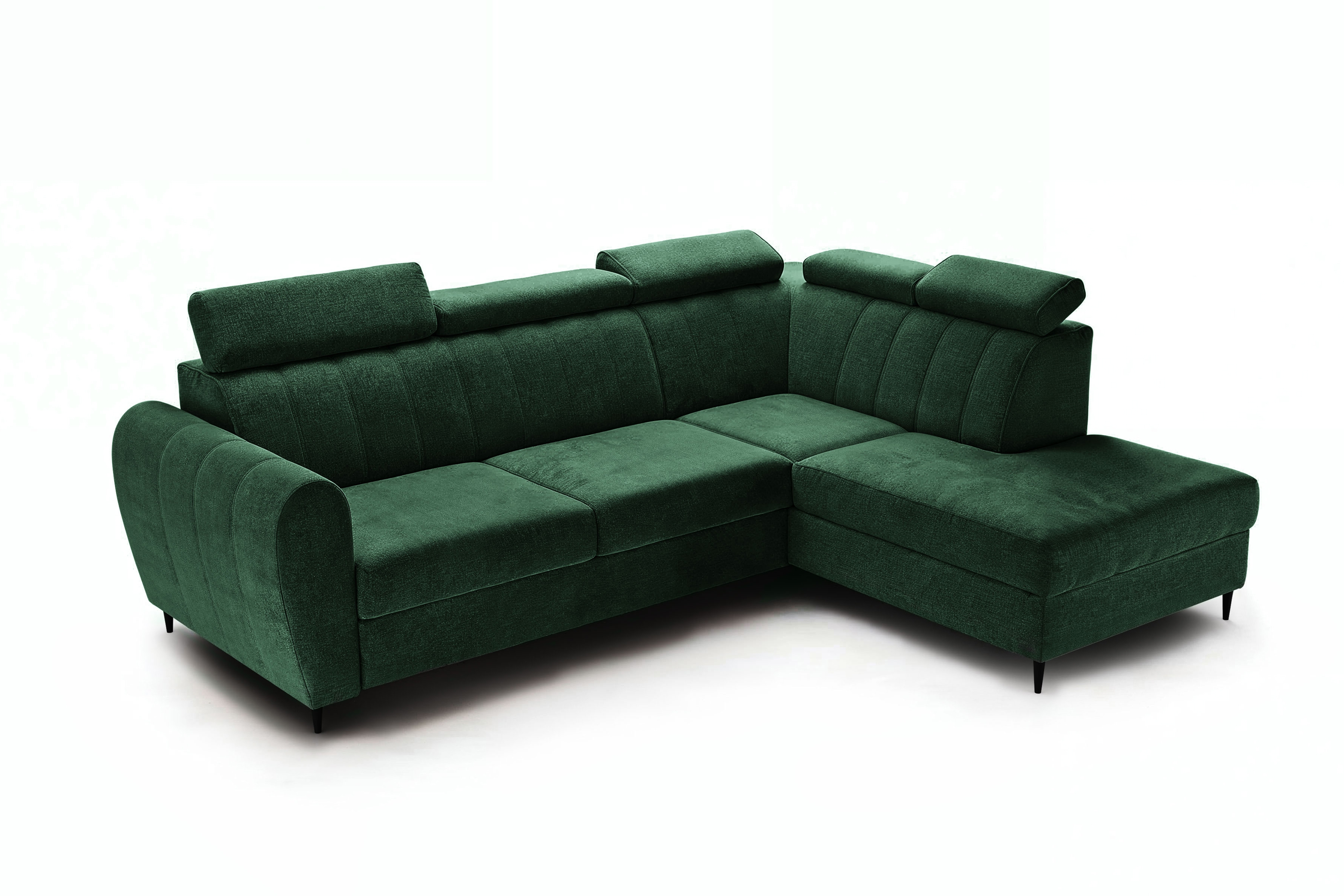 Hľadáte rozkladaciu rohovú sedaciu súpravu do obývačky? Predstavujeme vám rozkladaciu rohovú sedačku Celias L pravá - zelený zamat Kronos 19.