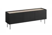 Nadčasová kombinácia čierneho matu s prírodným odtieňom dubu nagano vytvára elegantný kontrast, ktorý okamžite pritiahne pohľady. Minimalistický dizajn bez rúčok pôsobí čisto a moderne, zatiaľ čo jednoduché kovové nožičky dodávajú celku ľahkosť a vzdušnosť. Tento kúsok sa stane dominantou každej obývačky a podčiarkne tvoj zmysel pre detail.