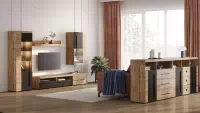Sada nábytku do obývačky Roger s komodami - dub wotan / čierny mat
