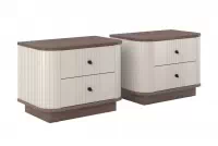 Elegantné línie frézovaných čiel v kombinácii s matnou kašmírovou farbou a doskou v dekore orecha vytvárajú nadčasový vzhľad, ktorý okamžite zaujme. Čierne kovové úchytky dodávajú celku nádych luxusu a dokonale kontrastujú s jemnými odtieňmi, vďaka čomu sa stolíky stanú výrazným doplnkom každej spálne.
