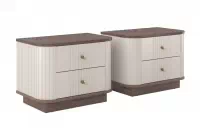 Elegantné línie v kombinácii s matnou kašmírovou farbou, teplým odtieňom orecha a decentnými zlatými úchytkami vytvárajú luxusný dojem, ktorý okamžite oživí atmosféru každej spálne. Frézované predné časti a zaoblené hrany pridávajú na sofistikovanosti, vďaka čomu sa tento kúsok stane štýlovým doplnkom vášho interiéru.