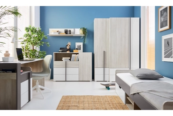 Študentská nábytková zostava Lumo III s posteľou 90x200 cm - dub wilton biely / biely lux / antracit