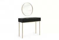 Moderné línie v kombinácii s čiernym matným povrchom a zlatými kovovými nožičkami vytvárajú luxusný vzhľad, ktorý okamžite upúta pozornosť. Minimalistický dizajn so zrkadlom v tvare kruhu dodá miestnosti šmrnc a ľahkosť, takže sa stane dominantným prvkom vašej spálne alebo šatníka.