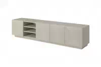 Hľadáte ideálny TV stolík do obývačky? Spoznajte náš produkt - TV skrinka Asha 200 cm na sokli s 3 otvorenými policami - kašmírová.