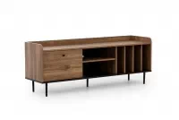 Ale to nie je všetko! Tento TV stolík ponúka aj obrovskú funkcionalitu. S rozmermi 150 x 56 x 40 cm, jednými výklopnými dvierkami a siedmimi otvorenými policami poskytuje dostatok priestoru pre všetky vaše zariadenia a príslušenstvo. Či už potrebujete miesto pre vašu konzolu, DVD prehrávač alebo knihy, táto skrinka to má.