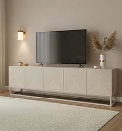 TV skrinka Asha 200 cm s ryhovaným frontom a výklenkom - kašmír