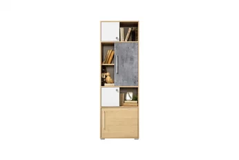 Elegantná kombinácia dubu artisan a bielej farby prináša do priestoru sviežosť a moderný vzhľad, ktorý sa hodí do každej detskej izby. Čierne kovové úchytky dodávajú dizajnu jemný industriálny nádych, vďaka čomu regál pôsobí štýlovo a nadčasovo. Vysoký a úzky tvar šikovne využíva vertikálny priestor, čím šetrí miesto a opticky zväčšuje miestnosť.