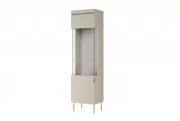 Vitrína Sentia 1D zaujme na prvý pohľad svojím sofistikovaným dizajnom. Kombinácia kašmírovej farby s luxusnými zlatými detailmi nožičiek a rukovätí vytvára harmonický a moderný vzhľad, ktorý sa hodí do každého štýlového interiéru. Vysoké nožičky dodávajú nábytku ľahkosť a eleganciu, čím sa stáva výrazným prvkom vo vašej obývačke či jedálni.
