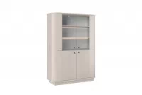 Elegantné línie v kombinácii s kašmírovým odtieňom a decentnými čiernymi kovovými úchytkami okamžite pritiahnu pohľady. Vizuálne nadčasový dizajn sa bez problémov začlení do modernej aj minimalistickej domácnosti, pričom frézované predné časti a zaoblené hrany dvierok dodávajú celej vitríne sofistikovaný vzhľad.