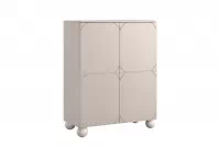 Jemný kašmírový matný odtieň a hladké línie prednej časti okamžite upútajú pozornosť a dodajú priestoru sofistikovaný nádych. Vďaka guľovým dreveným nožičkám pôsobí komoda vzdušne a elegantne, čo oceníte najmä v obývačke, kde každý detail hrá dôležitú úlohu pri tvorbe príjemnej atmosféry.