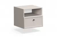Hľadáte štýlový a praktický nočný stolík, ktorý nielen skvele vyzerá, ale aj uľahčí každodenné fungovanie v spálni? Objavte závesný nočný stolík Lorini 45 cm - kašmírová / čierna úchytka G.