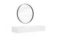 Elegantné línie, biely matný povrch a čierny rám zrkadla vytvárajú nadčasový vzhľad, ktorý dokonale zapadne do každej modernej spálne alebo šatníka. Minimalistický dizajn bez ručiek a frézovaná predná časť dodávajú nábytku luxusný nádych, ktorý zaujme na prvý pohľad a zároveň pôsobí vzdušne.