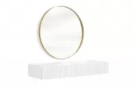Elegantný vzhľad bieleho matu v kombinácii so zlatým rámom zrkadla okamžite upúta pozornosť a dodá priestoru moderný, luxusný nádych. Frézovaná predná časť pôsobí mimoriadne vkusne a vďaka závesnému prevedeniu získate pocit vzdušnosti aj v menšej spálni či šatníku.